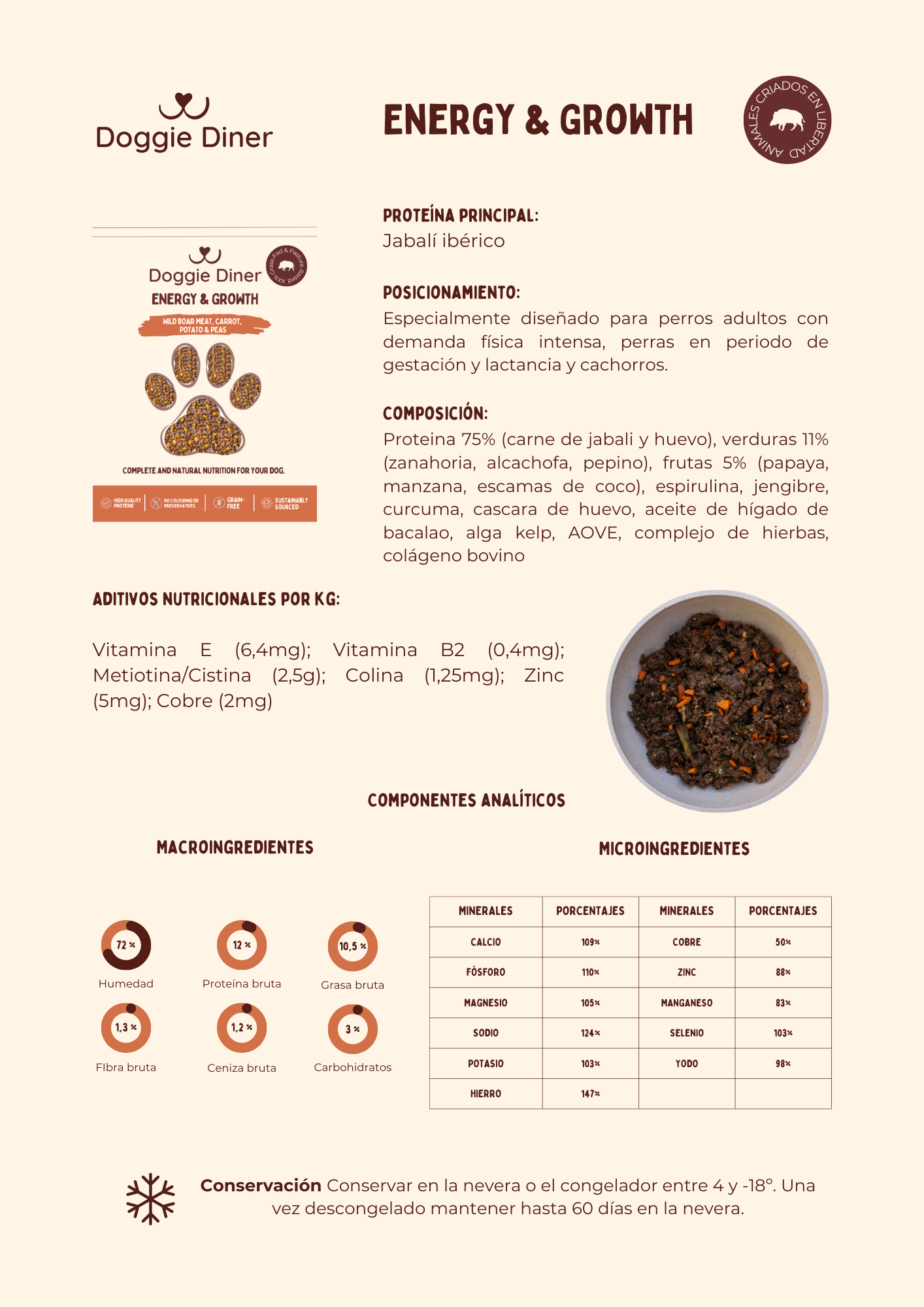 En Doggie Diner entendemos que cada perro tiene necesidades únicas, por eso diseñamos recetas adaptadas para distintos perfiles. Si tu perro es muy activo, necesita controlar su peso, tiene sensibilidad digestiva o problemas en las articulaciones, tenemos la opción perfecta para él. Todas nuestras recetas están elaboradas con ingredientes naturales y pensadas para mejorar su salud y bienestar.