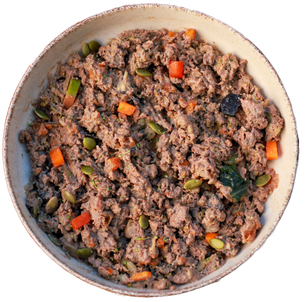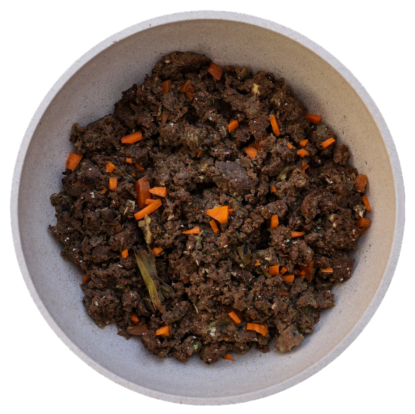 Cada receta está elaborada con carnes de animales criados en pastos y vegetales frescos, sin subproductos, conservantes ni aditivos artificiales. Tu perro merece lo mejor, y eso es lo que le damos.